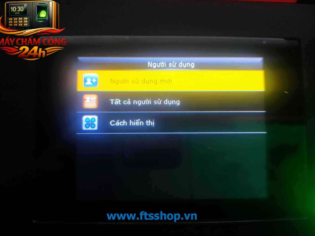 - Đăng ký vân tay: chọn vân tay -> ok (mỗi máy chấm công sẽ cho phép chúng ta đăng ký hết tất cả các ngón tay, nhưng chúng ta muốn đăng ký bao nhiêu ngón cũng được, đăng ký 1, 2 hoặc 3 là tùy chúng ta).
